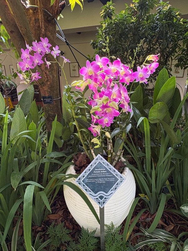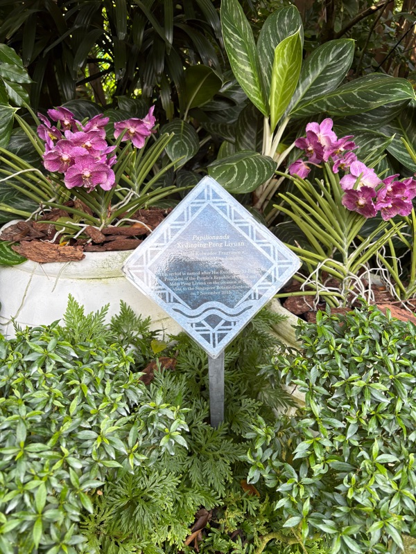 Moving on… I stopped at a lovely cafe (called the Bees’ Knees!) for some dunch and much needed rehydration before continuing on through the gardens. The National Orchid Gardens are supposed to be a particular highlight, so I visited there and absolutely loved it. I particularly enjoyed the VIP Orchid Garden (when Heads of State or other dignitaries visit Singapore, they will often get an orchid named after them!), and found Jacinda Ardern’s orchid as well as lots of others.