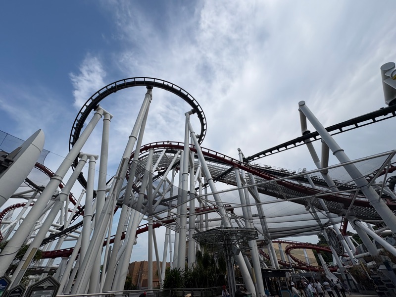 Next up was Sci-Fi land and the big coaster of the park. I have never been on a dueling coaster before - where there are two coasters entwined - and it was a cool concept to have the ‘Human’ coaster and the ‘Cylon’ coaster in a Battlestar Galactica themed ride. The queues for both sides were pretty long and with hindsight I made the wrong decision to go for the ‘Human’ side. Whilst it was a nice ride, there were no inversions, and it was a bit tame. Apparently the Cylon side is the better coaster, but I didn’t know that at the time! I did get to meet a teacher from India called Nina in the queue, which helped to pass the time, but I decided not to queue for the Cylon ride afterwards as I did not want to queue again.