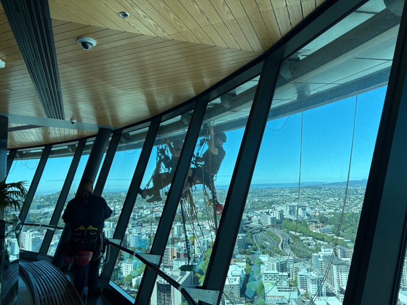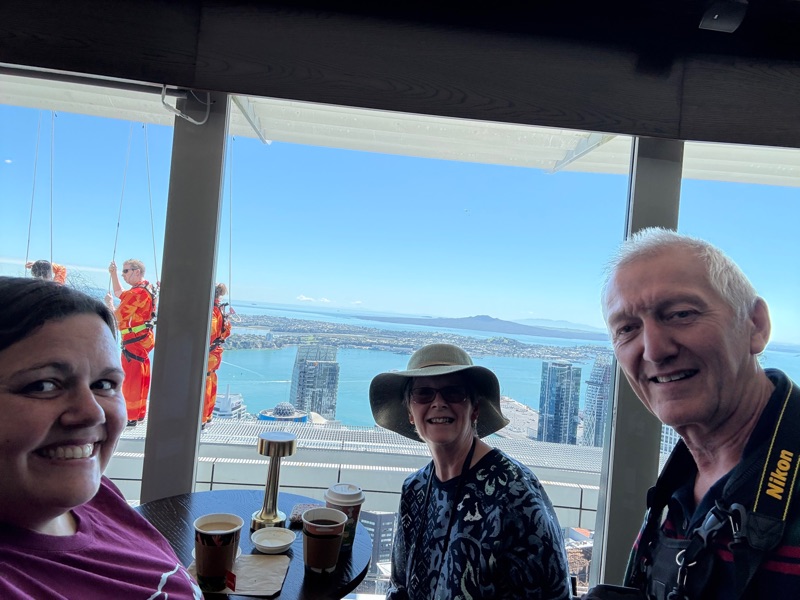 Our first stop was the SkyTower - a mere 328 metre high tower. It was apparently the tallest structure in the southern hemisphere until a tower in Indonesia knocked it into silver medal position a few years ago. We perhaps did not time our arrival at the tower very well, as we arrived at the same time as a big group of young school children, but we managed to get into the lift before them and to enjoy the views. I did consider whether I would fancy the job of being a window cleaner at the tower…