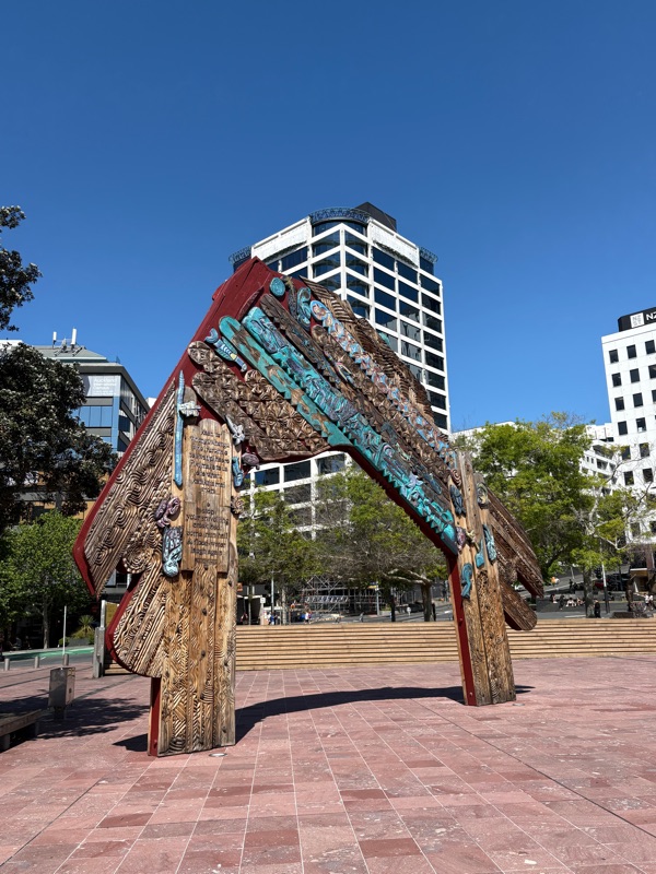 This afternoon, I went for a bit of an explore with geocaches as my guide. It worked a treat as I saw sights including St Matthew’s church, and Aotea Square, including Waharoa, a Māori entry gate for the city.