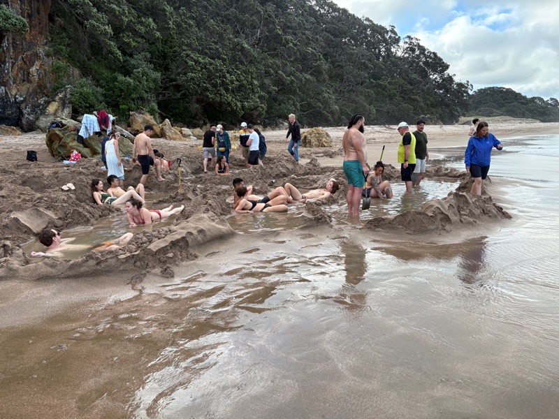 Our final tour stop for the day was Hot Water Beach. There are two geothermal springs under the beach, meaning that at low tide you can dig a hole on the beach and essentially have a thermal bath. Or, if you don’t want to dig a hole, you can just dig your feet into the sand. We were warned that it can be hot, but it was HOT! It was such a weird experience, but a lot of fun too.