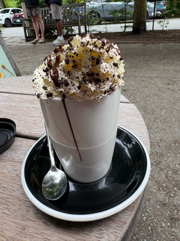 There was then time for a quick breakfast before we got on the bus to Arrowtown. I loved Arrowtown - it is very much a two-street town, but with lots of history (by NZ standards!) and a kind of Wild West vibe. There were some lovely shops (I may have brought another Christmas decoration. My tree next year is going to be something special), including an amazing chocolate shop. I can confirm that the deluxe hot chocolate is delicious. Dana also helped me to find a geocache. I have now converted a few people in the group to the joys of caching.