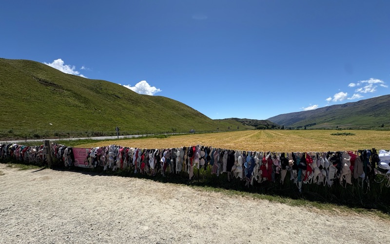 Apart from photo stops, we also stopped at a distillery where some people did a tasting, whilst I enjoyed a honey limeade in the sunshine. The distillery was also the site of NZ’s most famous fence - a fence of bras to raise awareness of breast cancer.