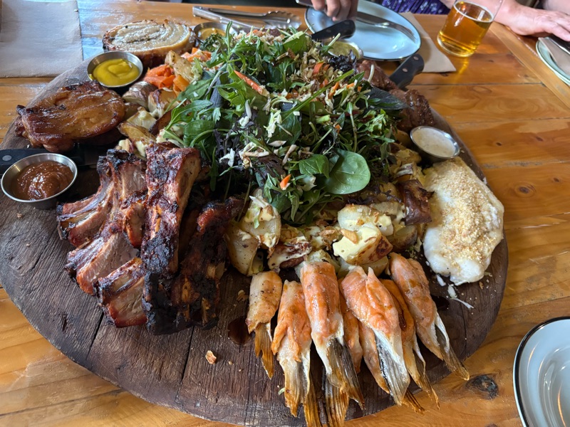 This evening we went to a fab restaurant just opposite the hotel. We had two ‘Butcher’s Platters’ between the fourteen of us, and….. wow……