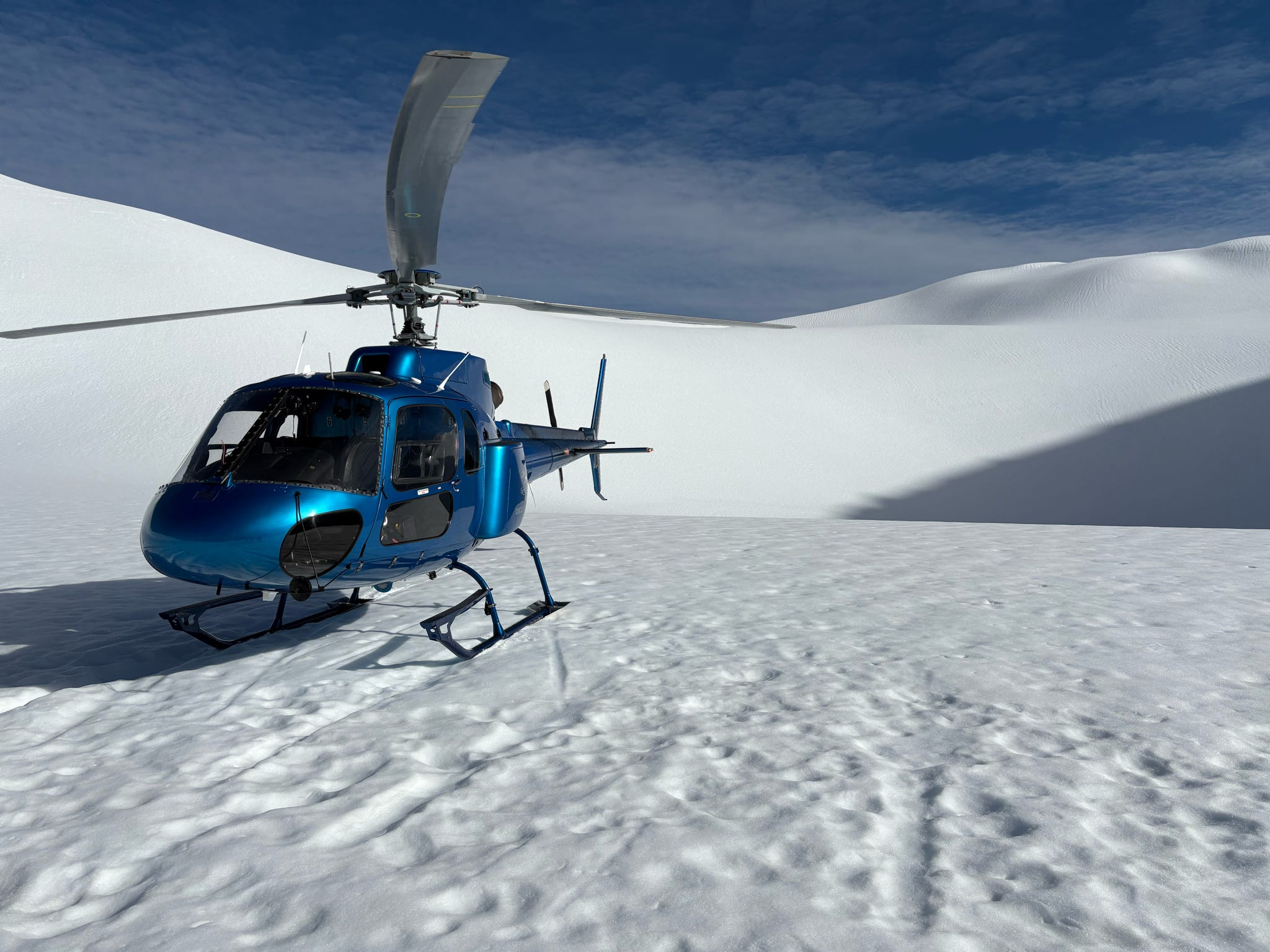 I was very relieved to wake up to decent weather, making it likely that our booked helicopter flight would go ahead. After a quick breakfast, the seven of us who had signed up headed to the helicopter offices to check-in and have the pre-flight safety video. I must confess to having enjoyed the video, with highlights including instructions not to throw snowballs at the helicopter, and not to put your hands in the air near the helicopter…