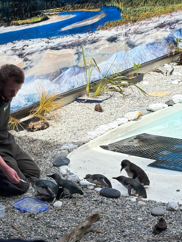 The absolute highlight though was seeing the little blue penguins at feeding time. These are the same type of penguin that are on Philip Island in Australia (giving me fond memories of the Penguin Parade there when I last visited Oz in 2015), and are utterly adorable. The seven penguins at the sanctuary are all injured penguins who have been rescued, which makes them even more delightful. I make absolutely no apologies for having taken so many pictures! This is just some of them….