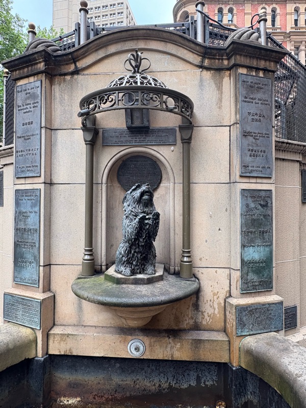 I had a slow start this morning, enjoying the hotel breakfast before then wandering up to Queen Victoria Building. Not only did I find a load of caches on this part of my adventure, but I also got into the festive spirit with some carol singers and some very impressive decorations. I also enjoyed lots of little bits of history around the place, especially this wonderful dog statue of Islay, Queen Victoria’s favourite dog.