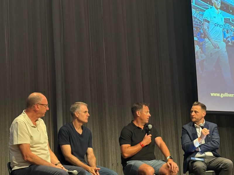 We had not been told who was talking, but word soon spread that we would be hearing from Jonathan Agnew, Simon Katich, and Marcus Trescothick. The event was hosted by the Aussie journalist Adam Collins.