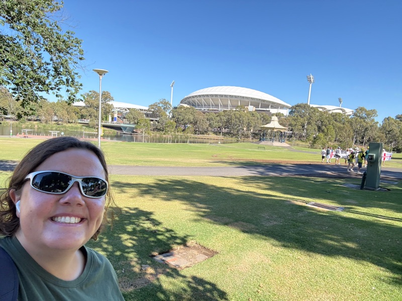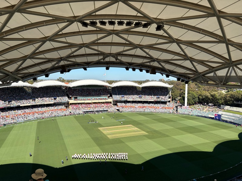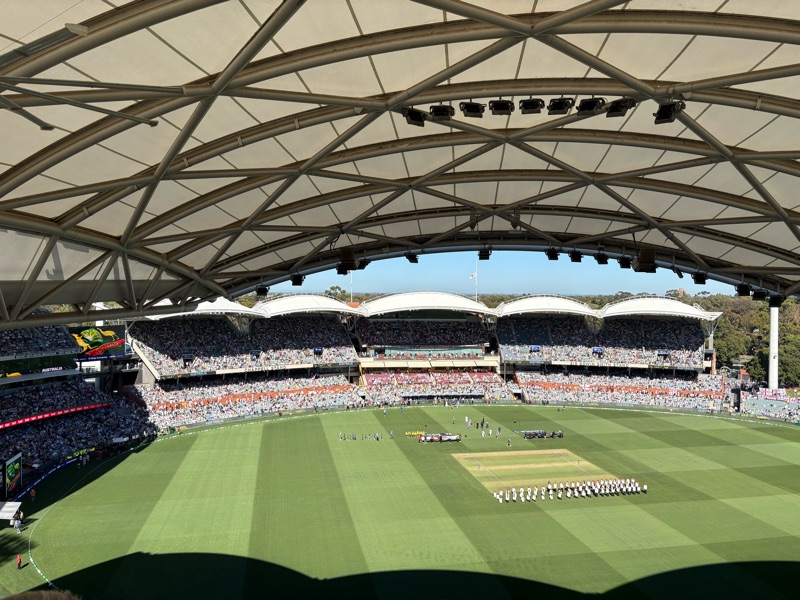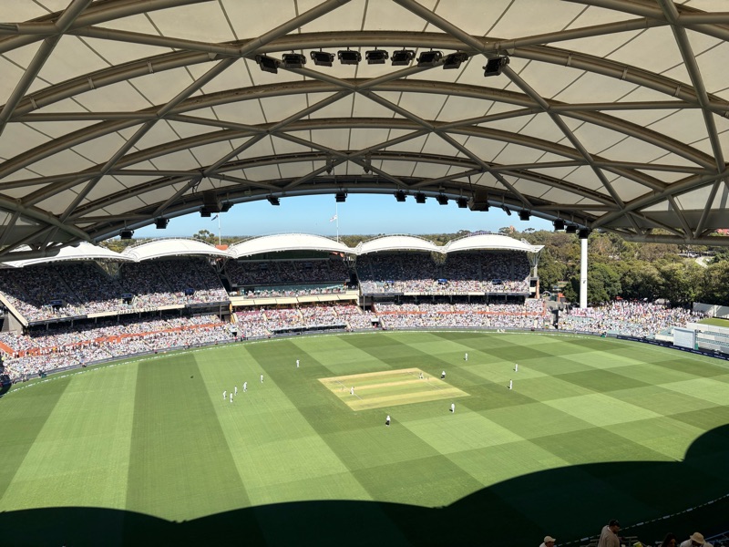 The TMS commentators reckon that the walk from the city centre to the ground is one of the best in world cricket, and it is hard to disagree. The city of Adelaide is full of lovely old buildings, and the walk to the ground takes you past lots of these, and then over the river to the stadium.