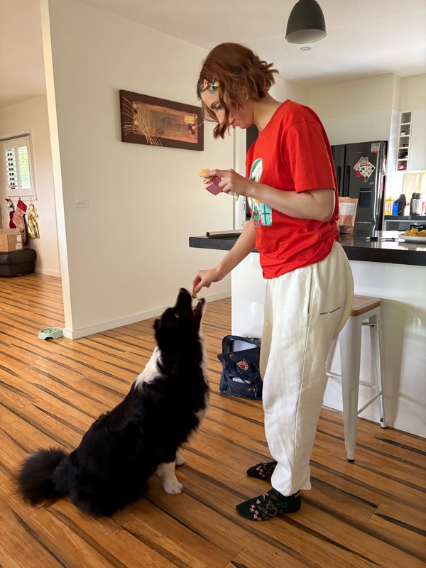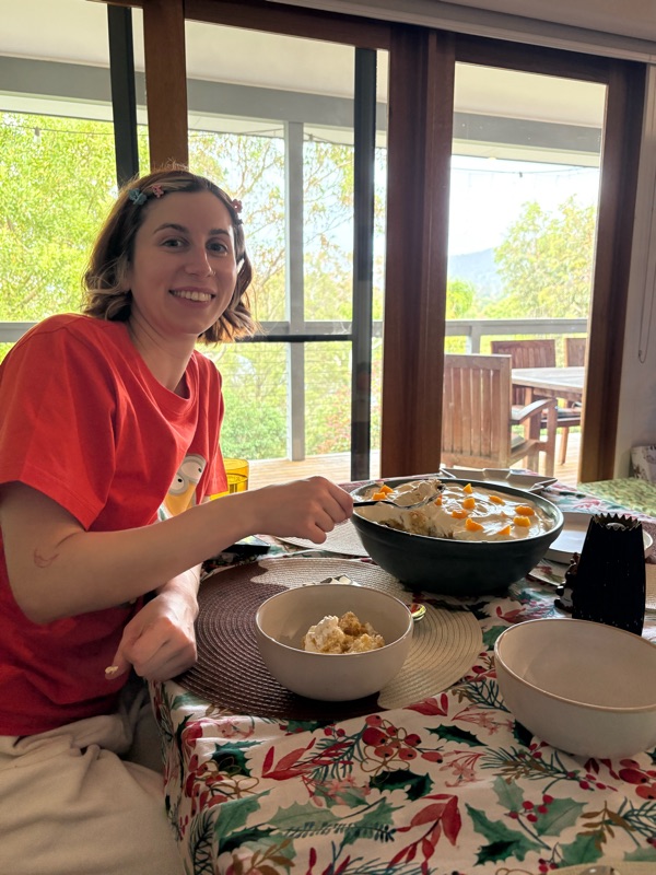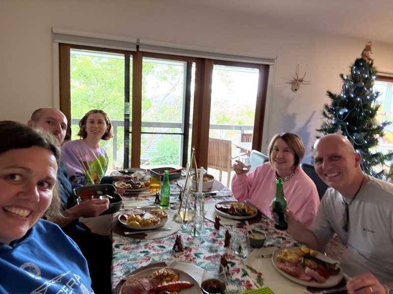 It was then time to take Kuma on a short walk and to help with some preparations for this evening. I took charge of the Hello Fresh prawn starter and am pleased to say that there are no reports of any food poisoning yet. Neil did most of the cooking, and we had a wonderful meal to celebrate both Sarah’s birthday and Christmas Eve. Curt was working late, so it was Neil, Sarah, Chloe, Brandon and me for dinner. There was SO much yummy food - ham, salmon, roast potatoes, pumpkin gratin, beans and carrots. We did our best to make a dent on the huge quantities of food, but it just wouldn’t be Christmas without the prospect of some left-overs.