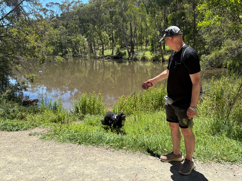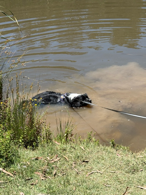 After a light lunch, Neil, Kuma and I headed out to Birdsland Reserve. It was a lovely walk around a lake. I was able to find geocaches and Kuma got to swim, so that was a win! It was rather warm though, and the flies were really annoying, so we didn’t exactly stay out there a long time.